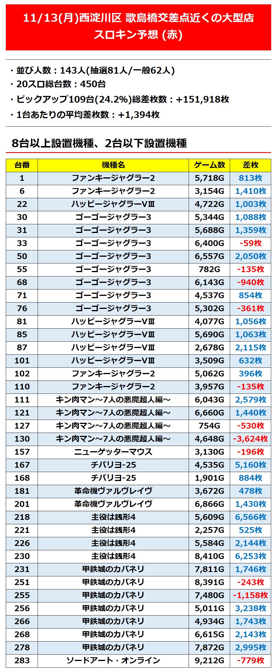 【大阪】11/13(月)西淀川区 歌島橋交差点近くの大型店【スロキン予想(赤)】 2023年11月14日 20:13 「ラクエン西淀川店」カテゴリの最新記事 「スロキン予想(赤)🟥」カテゴリの最新記事 < 前の記事次の記事 > コメント コメントフォーム 名前 コメント 記事の評価 リセット リセット 顔 星 情報を記憶 コメントを投稿する